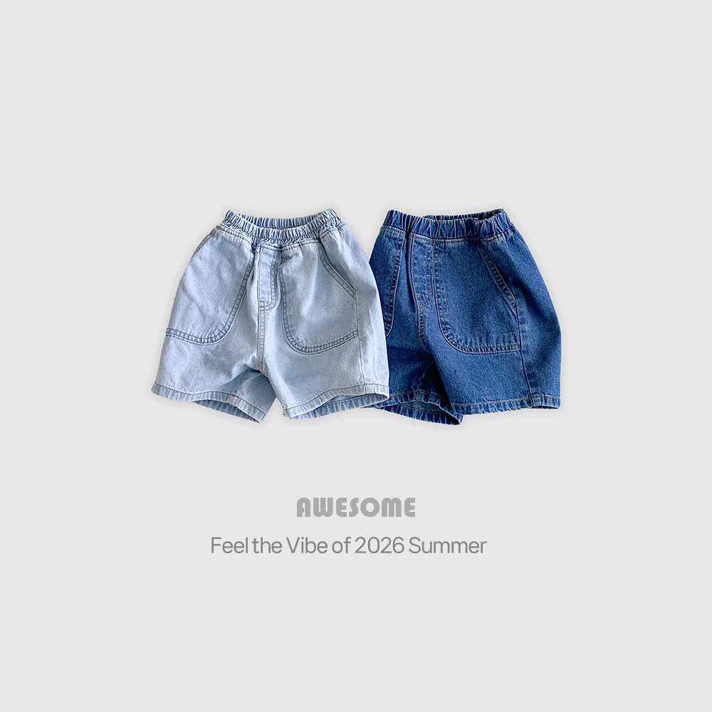 [85-140cm] 質感水洗寬鬆大口袋丹寧短褲 #Pyxis 羅盤座