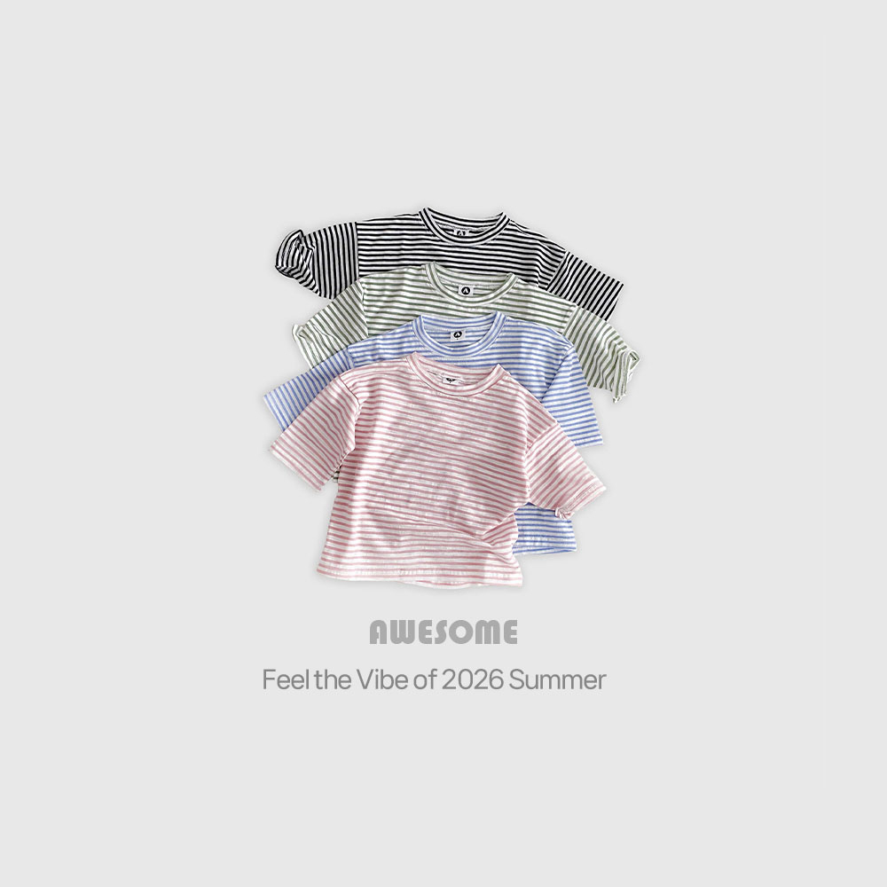 [85-140cm] 清爽韓系百搭細橫條紋七分袖T恤 #Pyxis 羅盤座