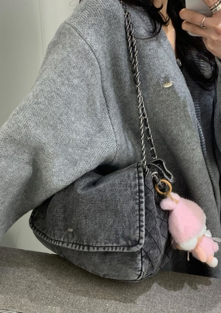 韓國女裝-水洗牛仔金屬鍊翻蓋包