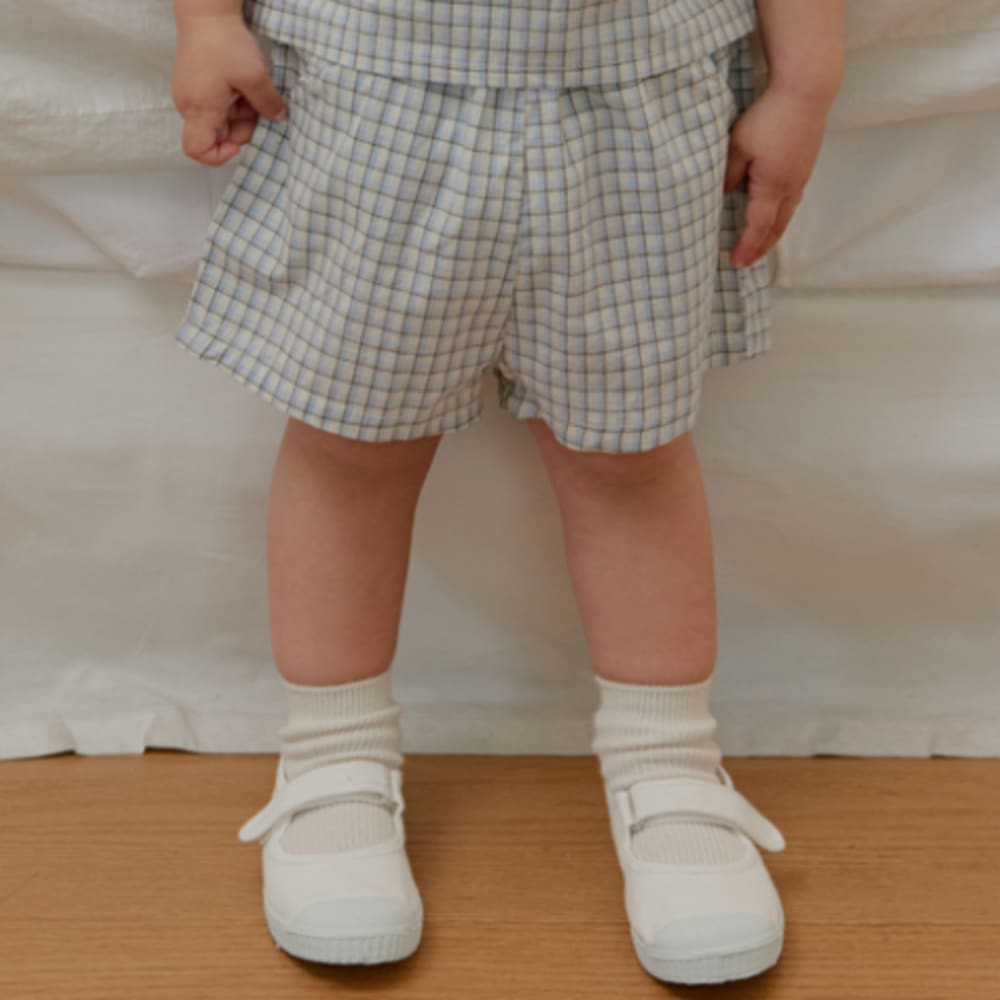 [70-115cm] 簡約小格紋彈性腰頭短褲 #Horologium時鐘座