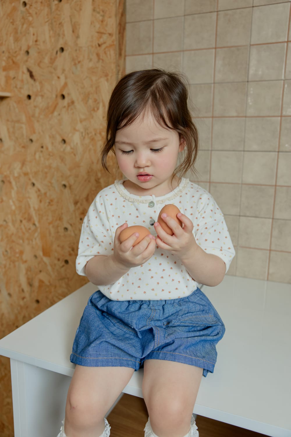 [70-115cm] 甜美小碎花荷葉領亨利領短袖T恤 #Horologium時鐘座