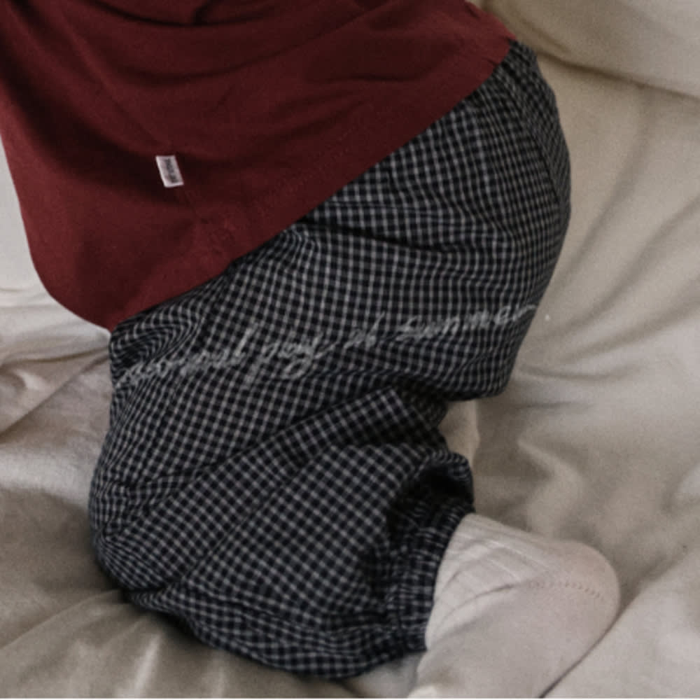 [55-120cm] 質感小格紋輕薄束口長褲 #LeoMinor小獅座