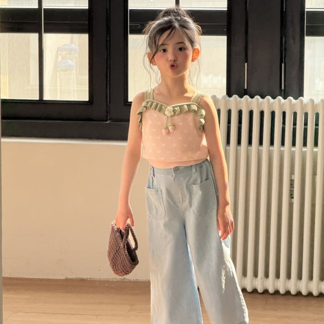 [80-130cm] 復古刷色寬鬆直筒丹寧長褲 #Cygnus天鵝座