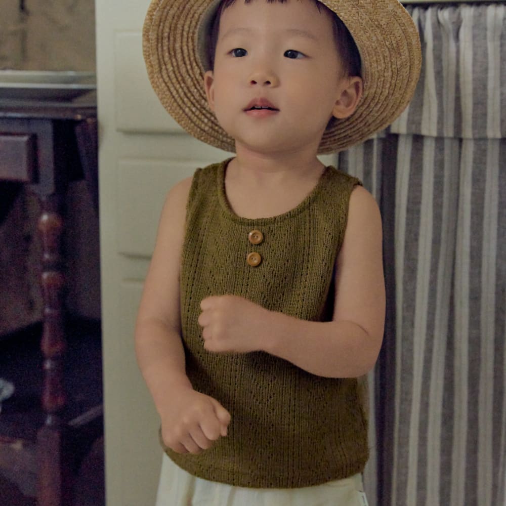 [75-110cm] 復古排扣鏤空針織無袖上衣 #Columba天鴿座
