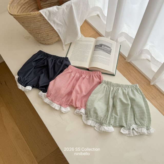 [80-130cm] 清新維希格紋花邊燈籠短褲 #Cygnus天鵝座 (大童)