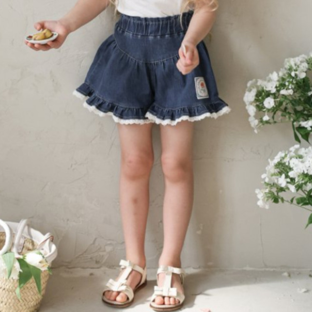 [80-135cm] 蕾絲花邊拼接丹寧短褲 #Lyra天琴座