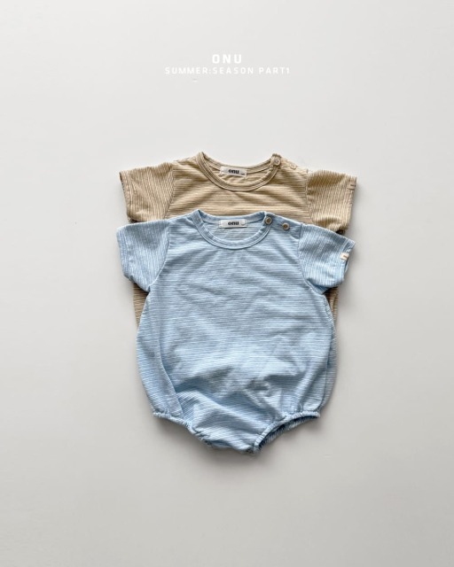 [70-115cm] 溫柔細條紋彈性短袖包屁衣 #Horologium時鐘座