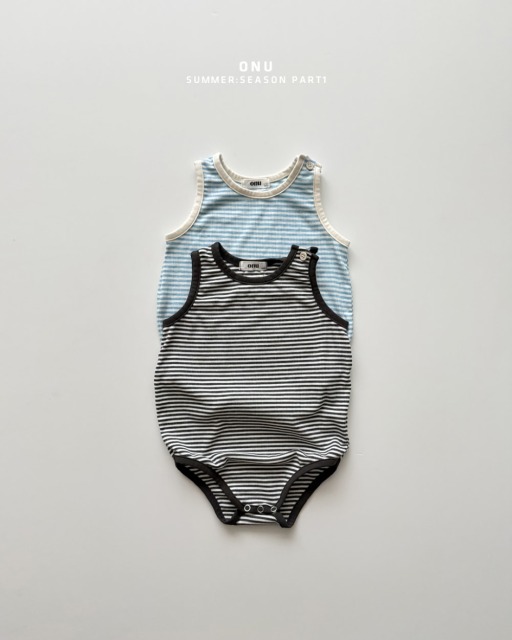 [70-115cm] 簡約細條紋開扣無袖包屁衣 #Horologium時鐘座