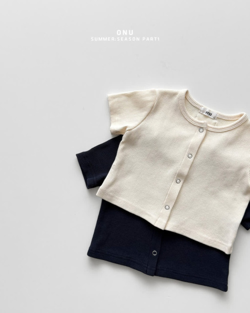 [70-115cm] 柔軟華夫格開襟排扣短袖小外套 #Horologium時鐘座