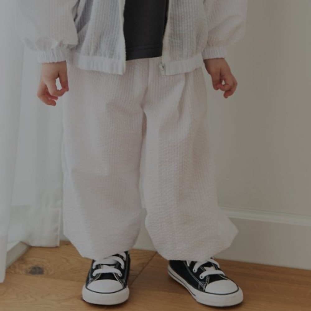 [75-120cm] 輕盈涼爽泡泡棉細條紋鬆緊束口長褲 #Delphinus海豚座
