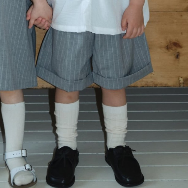 [75-120cm] 質感學院風細直條紋反褶鬆緊短褲 #Delphinus海豚座