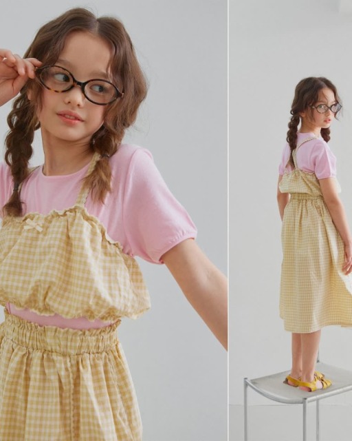 [90-138cm] 復古格紋縮口吊帶裙 #Aquila天鷹座