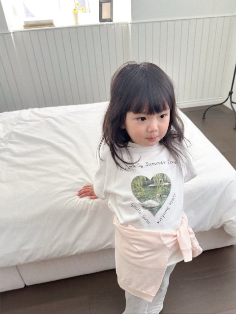 [85-130cm] 復古愛心天鵝相片短袖T恤 #Taurus金牛座