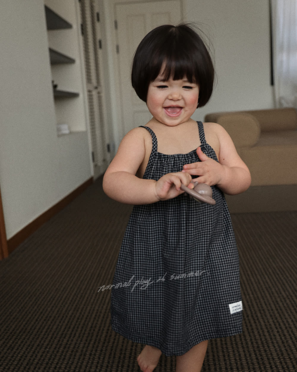 [55-120cm] 復古小細格紋細肩帶上衣 #LeoMinor小獅座