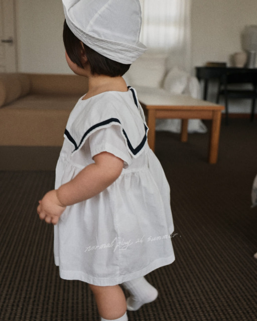 [55-120cm] 清新海軍方領縮褶洋裝 #LeoMinor小獅座