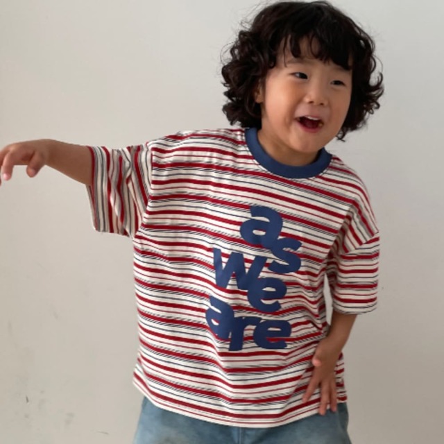 [90-155cm] 復古字母印花條紋T恤 #Crux南十字座