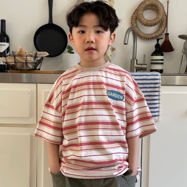 [90-155cm] 復古撞色徽章條紋T恤 #Crux南十字座