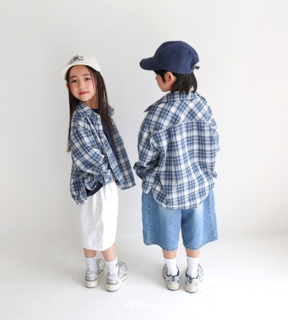 [90-165cm] 復古休閒格紋長袖襯衫 #Gemini雙子座
