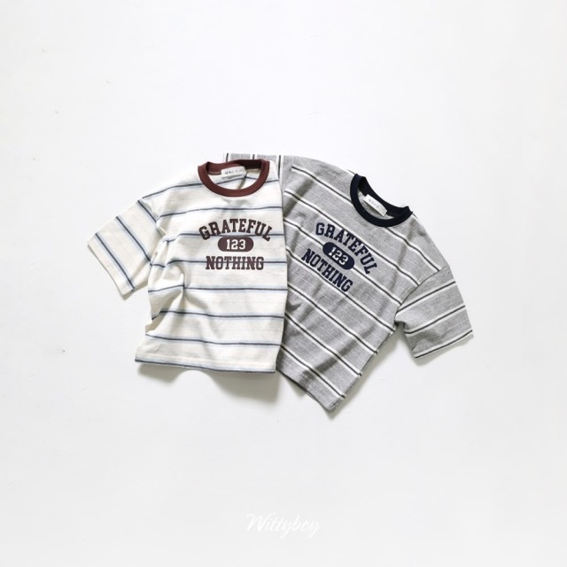 [90-165cm] 復古條紋字母短袖T恤 #Gemini雙子座