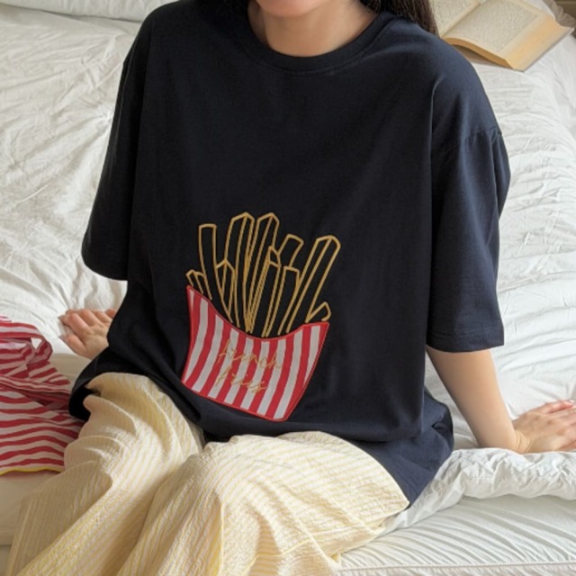 [Adult] 俏皮美式薯條刺繡短袖T恤 #Cygnus天鵝座