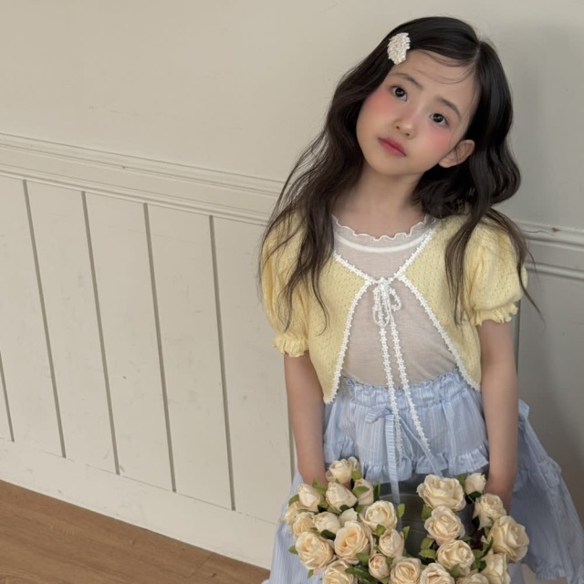 [80-130cm] 浪漫蕾絲滾邊鏤空短袖針織外套 #Cygnus天鵝座