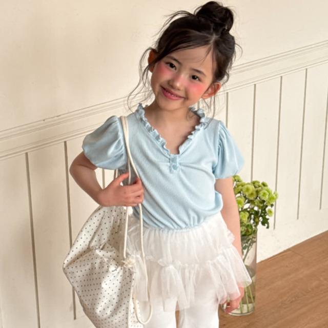 [80-130cm] 甜美木耳邊拼接澎澎紗上衣 #Cygnus天鵝座