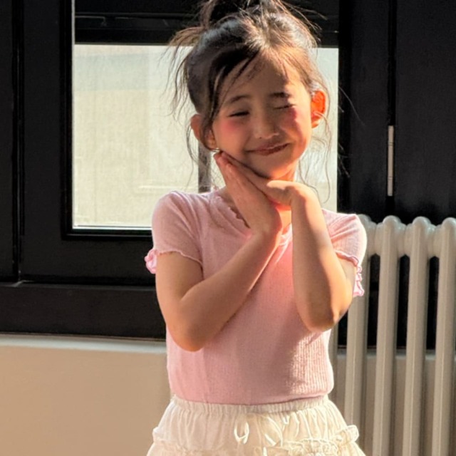 [80-130cm] 柔軟細緻坑條木耳邊短袖T恤 #Cygnus天鵝座