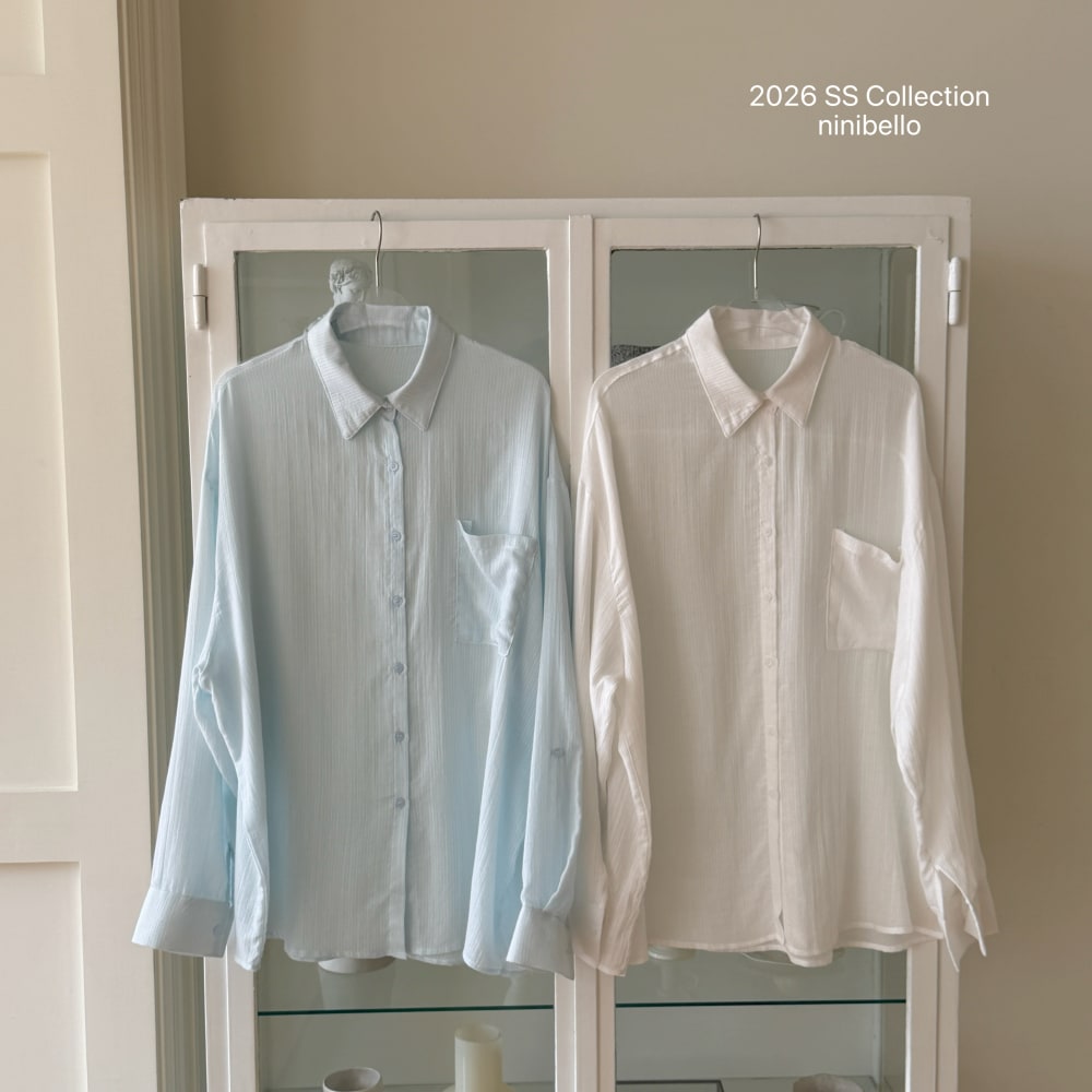 [Adult] 輕盈涼爽坑條皺磳長袖襯衫 #Cygnus天鵝座