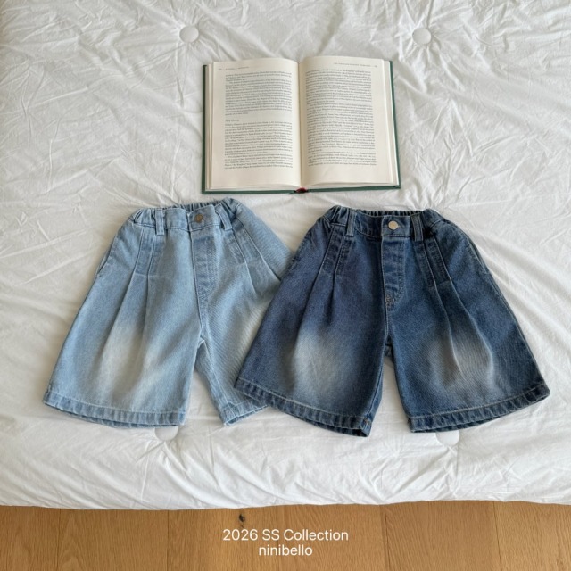 [80-130cm] 復古漸層打摺寬版丹寧短褲 #Cygnus天鵝座 (大童)