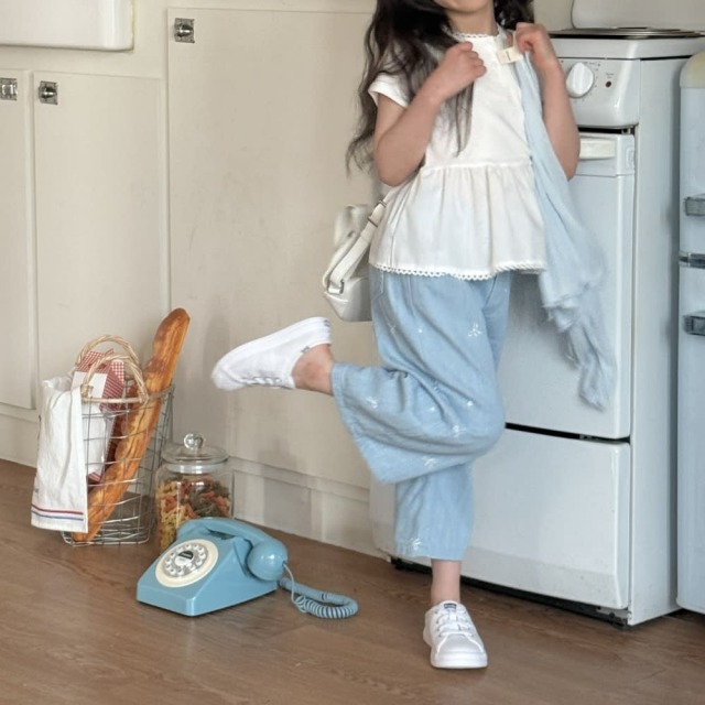 [80-130cm] 俏皮蝴蝶結滿印丹寧長褲 #Cygnus天鵝座
