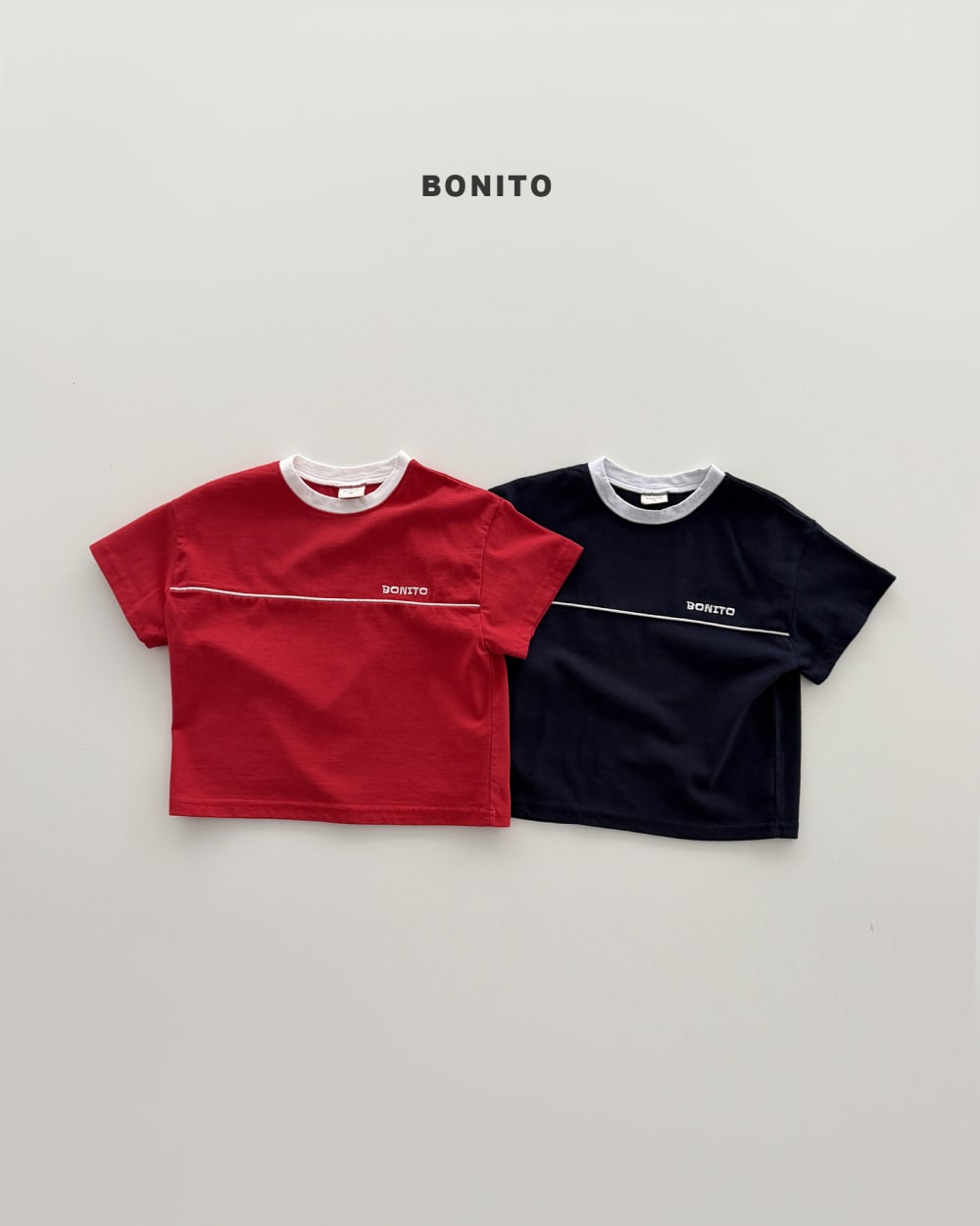 [80-125cm] 簡約拼色領口橫線字母短袖T恤 #Leo獅子座 (大童)