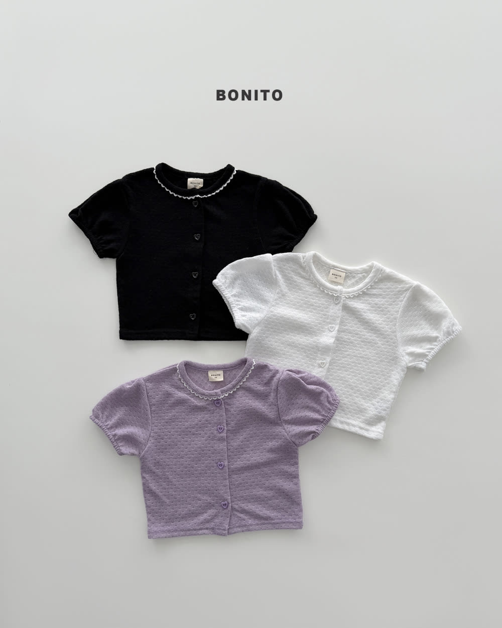 [80-125cm] 甜美感愛心釦羅紋短袖針織外套 #Leo獅子座 (大童)